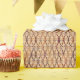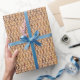 Ornate, arabesque swirl pattern wrapping paper in shades of camel tan, chocolate brown and caramel, outlined in white, with a light camel tan background
