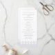 Our elegant wedding program features your ceremony details in soft grey, accented with a Moroccan inspired geometric border along the bottom in a lighter grey hue. Reverse side lists the members of your wedding party with easily editable text fields. Coordinates with our Arabesque wedding invitation collection in Silver Pearl.