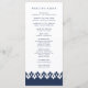 Our elegant wedding program features your ceremony details in rich navy blue, accented with a Moroccan inspired geometric border along the bottom in navy and white. Reverse side lists the members of your wedding party with easily editable text fields. Coordinates with our Arabesque wedding invitation collection in Navy.