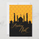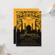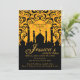 Arabian Nights, Gold and Black Invitation. Gold pillow style background with an Arabian city silhouette.