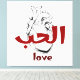 A modern and minimalist take on Arabic typography. The bold red "Al-Hub" (Love) creates a powerful visual statement that bridges the gap between traditional language and contemporary street-style design.