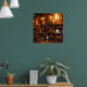 Depicts a detailed and realistic image of a sorcerer/wizard's store room. Features various mystic implements, including crystal balls and tall potion bottles, in browns and vanilla colours with a background of wood grain shelves and white wax candles. This highly detailed piece evokes a mood of fantasy dungeon or forest and is perfect for tabletop role-playing games such as "Dungeons and Dragons", "Pathfinder", "The One Ring", "Warhammer", "Heart: A City Beneath", "Pendragon", and/or "The Witcher RPG". Enhance your game room or office with this captivating poster.