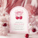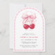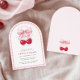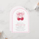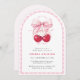 Celebrate the bride-to-be with the Arch Cherry On Top Bridal Shower Invitation, where elegant curves meet playful charm. This arch-shaped design showcases a delicate pink bow tied around glossy watercolor cherries, capturing the sweetness and romance of the occasion. Elegant calligraphy and soft pink and red hues create a feminine and modern aesthetic, perfect for a chic bridal shower. Ideal for coquette-inspired celebrations, this invitation sets a stylish tone for a day as delightful as the bride herself.