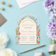 Arch Girl Baptism Gold Cross & Wildflowers Floral Acrylic Invitations