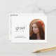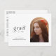 This modern black and white graduation announcement postcard features trendy typography and an arch-shaped photo. On the front, the word "grad" is written in unique type with the graduation year below. At the bottom, add the graduate's name and school. The typography is black against a chic white background. To the right of the typography, an arch-shaped photo is displayed. On the back of the grad postcard you can add a message to recipients and/or graduation party information.