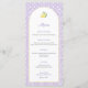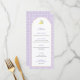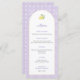 Citrus and Purple Wedding Shower menu featuring a simple single lemon and minimalist arch shape against a background of lavender and white tiles (design based on a vintage Mediterranean tile print).