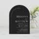 An elegant and stylish wedding invitation design featuring a modern arch layout in a sleek black and white minimalist theme. The invitation showcases clean lines and a sophisticated typography layout, using bold sans-serif fonts paired with subtle script accents. The arch serves as the centerpiece, with key wedding details such as the couple’s names and event date prominently displayed. The design emphasises simplicity and refinement, using high contrast and negative space to create a timeless and contemporary look. Perfect for couples seeking a modern and chic aesthetic for their special day.