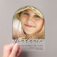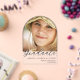 These sleek clear acrylic graduation announcements feature your graduate's photo front and centre. Accented with GRADUATE in a large black girly script with bold white drop shadows and decorative dot details, these arch style acrylic invitation cards blend the elegant with the modern. Easy to customise, two text templates of black wording leaves space for you to add your graduate's name - shown here double spaced for interest - and in a smaller font immediately below, your graduate's details. Use these sleek acrylic graduation invites as announcements and include a smaller paper card with the graduation party details; friends and family will have the acrylic card as a keepsake after the graduation celebration.