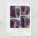 This Holiday Card features an arched photo on the front and 4 photos on the back. For this design "happy new year" and "all our love" are not editable, but all other text can be customised.