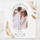 Announce your wedding date in style. Your guests will love the announcement and appreciate the nice gift! Whether you add label to a wine bottle or any other jar, bottle, box or anything else you like, is up to you, wine bottle is simply an example. Design with elegant arch photo overlay framed with your names. Attractive golden leaves on the sides and modern hand written calligraphy details. Design with leaves in several colour choices.