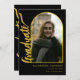 Celebrate your daughter’s college, university or high school graduation with this stunning stylish gold and black graduate photo arch graduation announcement card. Featuring elegant gold script calligraphy and a gold arch graduate photo template, this design captures the excitement of new beginnings and joyful celebration. Personalise it with a cherished photo of your graduate using the easy-to-use photo template, and highlight event details in stunning typography. Designed by artist Catherine Sweetman, this unique invitation beautifully combines elegance with the thrill of your daughter’s achievement, making it the ideal way to gather loved ones and mark this special milestone.