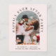 Chic budget-friendly light pink elopement announcement and reception invitation. The front features your photo in an arch frame and "Happily Ever After Party" in elegant typography. Add your first names, wedding date and location. On the reverse side, personalise your announcement and invitation, add your names in a signature-like script and input your wedding website address to create a scannable QR code for your guests to scan to RSVP online and obtain additional details.