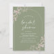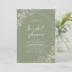 Light pink and olive green modern boho arch bridal shower invitations with registry & wedding website on back: These boho arch with vines bridal shower invitations are uniquely romantic and boho. Set in light pink and a muted olive green.