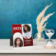 A keepsake graduation plaque with two photos in arch designs. The plaque has a red, burgundy, and white colour scheme. Simply add your photo & information, add this plaque to your cart, and have a keepsake of this major achievement.