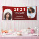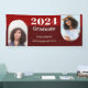 A graduation banner with two photos in arch designs. This banner has a red, burgundy, and white colour scheme. Simply add your photo & information, add this banner to your cart, and celebrate this major accomplishment!