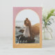 This modern holiday card features a single, vertical photo framed within a beautiful arch. The background has a rich, painted texture in warm pink and gold colours. Personalise this flat card with a custom greeting, script text, name, year and vertical photo on the front. Choose between a wide array of paper types. Select the rectangular shaped 5" x 7" card or add a dye cut border shape. Matching items are available. Perfect for a Christmas, holiday or wedding photo card to share with family and friends.
