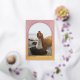 This modern holiday card features a single, vertical photo framed within a beautiful real foil arch. The background has a rich, painted texture in warm pink and gold colours. Personalise this flat card with a custom greeting, script text, name, year and vertical photo on the front. Select real gold foil, silver foil or rose gold foil. Choose between a wide array of paper types. Select the rectangular shaped 5" x 7" card or add a dye cut border shape. Matching items are available. Perfect for a Christmas, holiday or wedding photo card to share with family and friends.