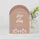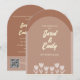 Modern and unique way to send invites to friends and loved ones. This wedding invitation features an arch style with a nature theme of standing flowers at the bottom. Plus, there is a QR code on the back for RSVP responses. Shown in mocha brown. Just change the text to suit your needs. Use the template to create your own arch style wedding QR code invitation.