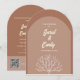 Modern and beautiful way to send invites to friends and loved ones. This wedding invitation features an arch style with a tree nature theme. On the back there is a QR code for RSVP responses. Shown in mocha brown. Customise the text to suit your needs. Use the template to personalise.