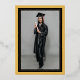 A modern minimalist graduation party invitation photo card design featuring a minimalist arch tassel frame on a diamond shaped (mortarboard). The back side of the card features a photo of the graduate.