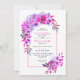 Boho arch with magenta pink and purple flowers and leaves wedding invitation. This pretty wedding design showcases an arch frame with dalia and rose flowers and foliage in pink and purple colours. The back is of solid magenta pink colour.