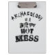 This funny witty clipboard is decorated with the sentence "Archaeology is a dirty hot mess" in fancy creative characters in a bold red and dark grey colour. It is a great gift for an archaeologist friend, or for an archaeology student with a great sense of humour!