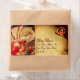 Italian late mediaeval masterpiece from Fra Beato Angelico ,Annunciation Angel Detail Italy,elaborated with old aged brown parchment effects and a bright 3D red ruby gem stone.