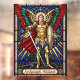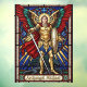 "st archangel michael saint", "patron arcangel angel icon", "spiritual bible vintage picture image", "christian prayer en la biblia", "holy sacred christianity religion", "orthodox religious priest pope bishop", "roman catholic church guardian father", "divine winged spiritual protector", "colorful multicolor stained glass"