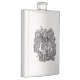 The product is a good size and came exactly as it was pictured. The lid is not attached to the flask, which could be dangerous on drunken nights... The print came out surprisingly well and looks very sharp. Would definitely recommend.