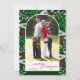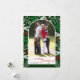 This flat Christmas greeting card features a modern vertical arched photo accented with a colourful border of Christmas greenery. The design offers elegant script text "Merry Christmas" and a dark green background. Photography © Storytree Studios, Stanford, CA