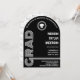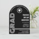 These arched graduation announcements blend retro with modern in black and white for a classic look. A mix of fonts, from the openwork typography GRAD down the side to the bold lettering for the graduate's name, adds to the interest. Each card reverses to white with a thin openwork cap and tassel design. Easy to customise, just add your graduate's details using the text templates and create your own one of a kind graduation announcements.