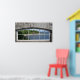 This lovely wide arched window frames a sea view. The window with its 12 panels has a graceful arch to the top edge and is set in a traditional stone wall typical of Scottish coastal towns. The peaceful scene beyond shows the sea meeting the coast where there are green leafy trees and a small stone defense wall with a tower. This picture creates a beautiful window effect when hung on your wall, creating a scenic view from any room.