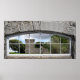 Mediaeval Castle framed by a Window Arch History lovers, now you can have your very own view of a Mediaeval Scottish Castle right outside your window! This poster is a window and view all in one, showing a lovely arched window set into an old stone wall. The view through the 12 panes is of a genuine castle built many centuries ago in Scotland. Mary Queen of Scots was a prisoner in this very castle which is now mostly ruined. The scene includes green trees and a stormy sky which captures the unique atmosphere of a Scottish landscape.