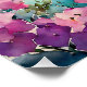 "Arches By The Sea". A idyllic view of a beautiful bay, with a single boat. A small sandy beach is framed by a beautiful azure sea and pink and purple flowers.