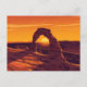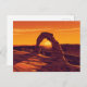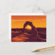 Dramatic vintage-style travel poster illustration of the iconic Delicate Arch at sunset, featuring rich orange and red tones across the landscape of Arches National Park, Utah. Captures the famous geological formation and the beauty of the desert evening. Ideal for hikers, Utah enthusiasts, and collectors of retro WPA national park art.