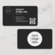 Professional black business card for architects featuring a logo and QR code layout. Designed so clients can quickly view your portfolio, save your contact details, or visit your website while reinforcing a strong, modern architectural brand. Ideal for client meetings, project consultations, site visits, and networking events. Editable text, QR destination, and logo placement. Clean print-ready layout.