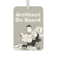 Car Air Freshener. An architect is in his office studying plans. Grey background.
