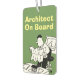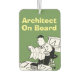 Car Air Freshener. An architect is in his office studying plans. Green background.