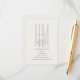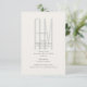 Elegant and minimalist wedding details card featuring a modern architectural monogram design.