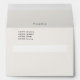 This architectural wedding envelope features a bold surname return address layout and a minimalist interior timeline design, created as a modular extension of a contemporary wedding suite.