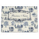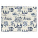 Navy and crème toile pattern of my own design. The individual images are historic American homes drawn in the 18th century, courtesy of New York Public Library public domain collection.