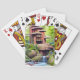 Artistic playing card deck features an AI generated digital watercolor of a F.L. Wright prairie style architectural treehouse.