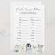 Arctic animals themed baby shower finish mummy's phrase game card features a watercolor winter animals illustration and watercolor greenery eucalyptus garland and elegant handwritten style font.