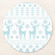 Arctic Blue Folk Art Winter Theme Round Paper Coaster