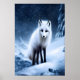 A white Arctic Fox standing in the snow in snowy weather in the mountain. This is a AI generated art.