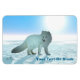 White on white. A digital painting of an Arctic Fox, Vulpes lagopus, on the polar ice. The sun hangs low in the bright blue arctic sky. Do not stare at the sun as it can harm your eyes. Add your own text. The Arctic Fox is comfortable in deep cold; it does not begin to shiver until temperatures drop to about −70 °C (−94 °F) due to its dense, multi-layered fur. Other adaptations to a frigid climate include fur on the soles of its feet, short ears, and a short muzzle. Arctic foxes live in burrows, in a blizzard they may tunnel into the snow to create shelter. The coat of the Arctic fox, sometimes blue-grey, is very effective winter camouflage. The natural hues allow the animal to blend into the environment. During the short warm season its coat changes to brown or grey, again acting as camouflage in tundra rocks and plants. During the winter, when prey is scarce, the foxes follow hunting Polar Bears on the ice pack feeding on scraps. During the summer the eat rodents, birds, eggs, and even fish. They will also feed on berries and seaweed. Arctic Foxes have extremely keen hearing, aided by their wide, front-facing ears, which allow them to locate the precise position of their prey beneath the snow. If it hears something moving under the snow it leaps into the air and pounces, punching through the snow to catch its prey. The range of the Arctic Foxes is circumpolar; they can be found throughout the far north. The only land mammal native to Iceland, it arrived by walking oversea ice at the end of the last ice age.