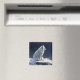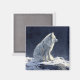 A beautiful white arctic fox sitting in a snowy wonderland, a serene scene captured in an oil painting on a picturesque magnet. Perfect for decorating the kitchen of a fox lover.