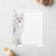 An elegant animal themed modern notecard featuring a watercolor painted arctic fox with fixated eyes against a stark white minimalist background. The backside of these note cards feature the animal printed in large size.