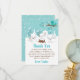 This cute and fun baby shower thank you card features an adorable arctic fox family in a winter wonderland setting with snow capped trees and a blue bird on a branch with holly. In the background is a teal blue green sky and falling snowflakes. The text combines decorative and sans serif fonts for a stylish and modern look. This is perfect for a Christmas or winter themed baby shower.