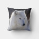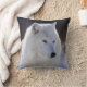 Photograph of Arctic wolf cropped to head and chest printed to edges of pillow.